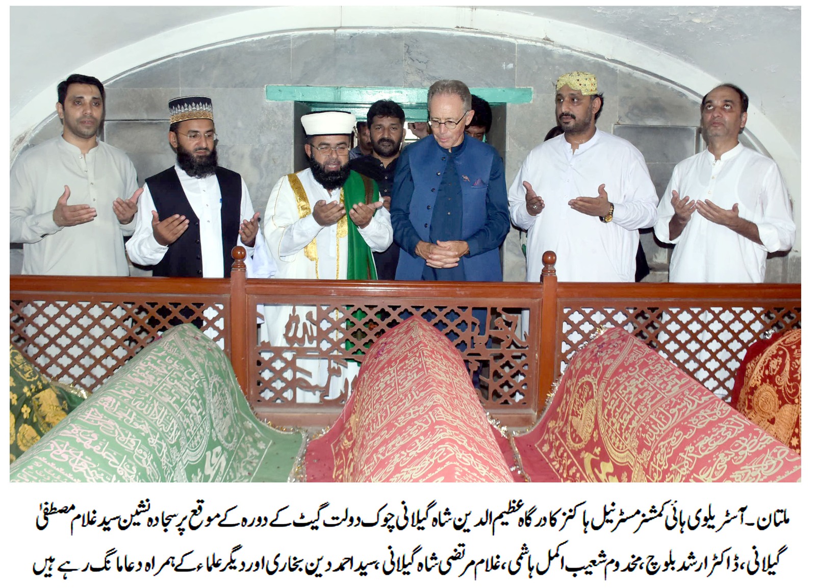 ملتان اولیاء اللہ کا شہر ہے اور میں اس شہر سے پیار کرتا ہوں میرا کئی بار ملتان آنا ہوا ہے:آسٹریلیا کے ہائی کمشنر نیل ہاکنز
