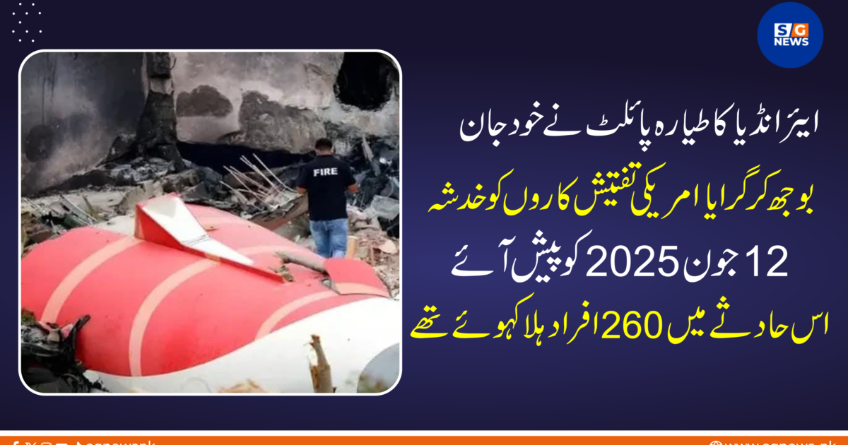 امریکی تحقیقاتی ٹیموں کو شبہ ہے کہ ایئر انڈیا کی پرواز 171 کو حادثہ مبینہ طور پر پائلٹ کی جانب سے گرائے جانے کے باعث پیش آیا تھا۔