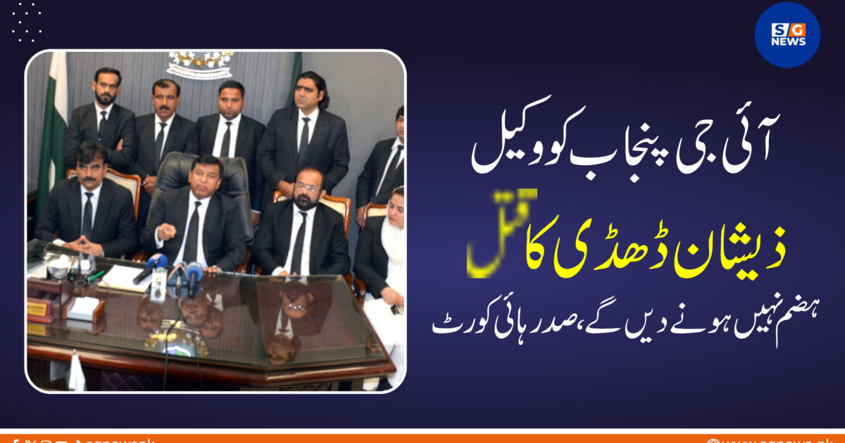 آئی جی پنجاب کو وکیل ذیشان ڈھڈی کا قتل ہضم نہیں ہونے دیں گے،صدر ہائی کورٹ