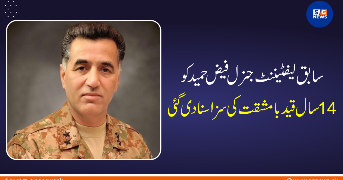 پاکستان آرمی کے سابق سینئر افسر لیفٹیننٹ جنرل (ر) فیض حمید کو فیلڈ جنرل کورٹ مارشل نے 14 سال قید بامشقت کی سزا سنائی ہے۔