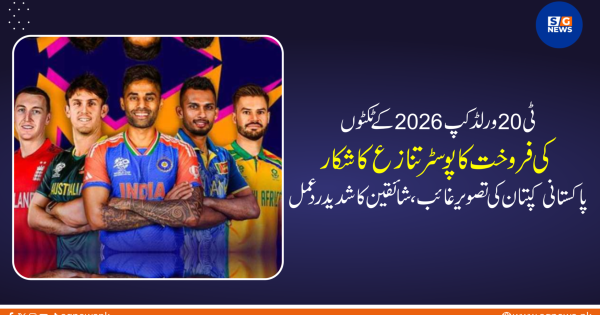 ٹی 20 ورلڈ کپ 2026 کے ٹکٹوں کی فروخت کا پوسٹر تنازع کا شکار — پاکستانی کپتان کی تصویر غائب، شائقین کا شدید ردعمل