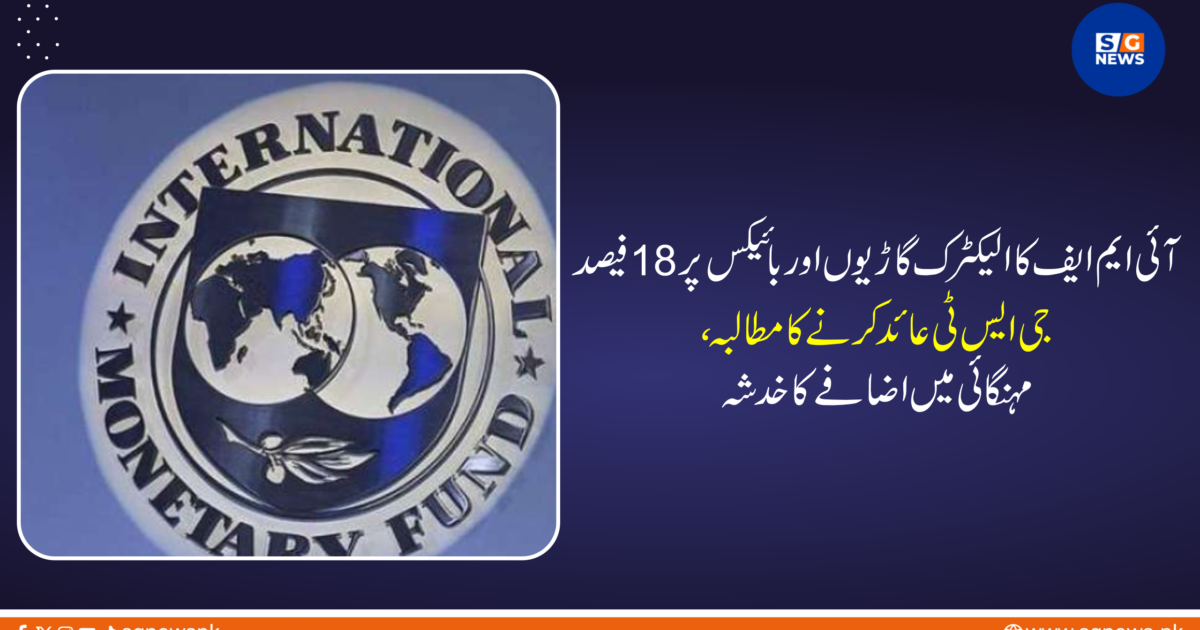 آئی ایم ایف کا الیکٹرک گاڑیوں اور بائیکس پر 18 فیصد جی ایس ٹی عائد کرنے کا مطالبہ، مہنگائی میں اضافے کا خدشہ