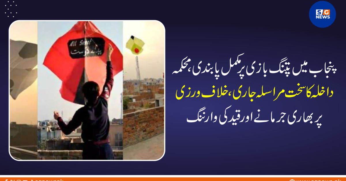 پنجاب میں پتنگ بازی پر مکمل پابندی، محکمہ داخلہ کا سخت مراسلہ جاری، خلاف ورزی پر بھاری جرمانے اور قید کی وارننگ
