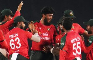 قبل ازیں بیسٹ آف تھری سیریز کے دوسرے میچ میں پہلے بیٹنگ میں صرف 28 رنز پر 4 وکٹیں کھونے والی بنگلہ دیشی ٹیم نے مڈل آرڈر جوڑی جاکر علی اور مہدی حسن کے مابین پانچویں وکٹ کیلئے 56 رنز کی پارٹنر شپ کی بدولت سانس بحال ہوئے تو اننگز کے آخری 6 اوورز میں آخری پانچ بیٹرز نے مزید 49 رنز بنا کر ٹیم کیلئے 133 رنز کا مجموعہ سکور بورڈ پر سجایا جو پاکستان کے خلاف دوسرا میچ اور سیریز جیتنے کیلئے کافی ثابت ہوا۔